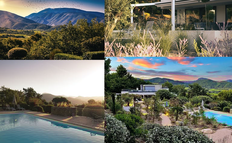 terraced landscaped garden of 10,000 m2 on 70 hectare classified and protected forest estate.