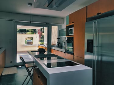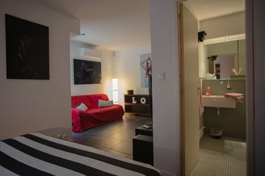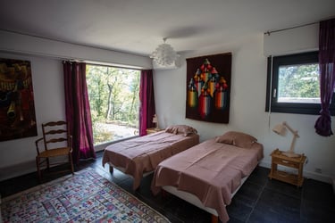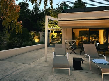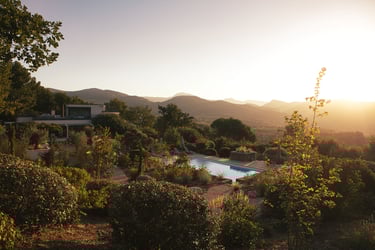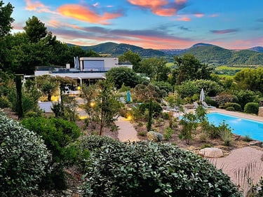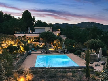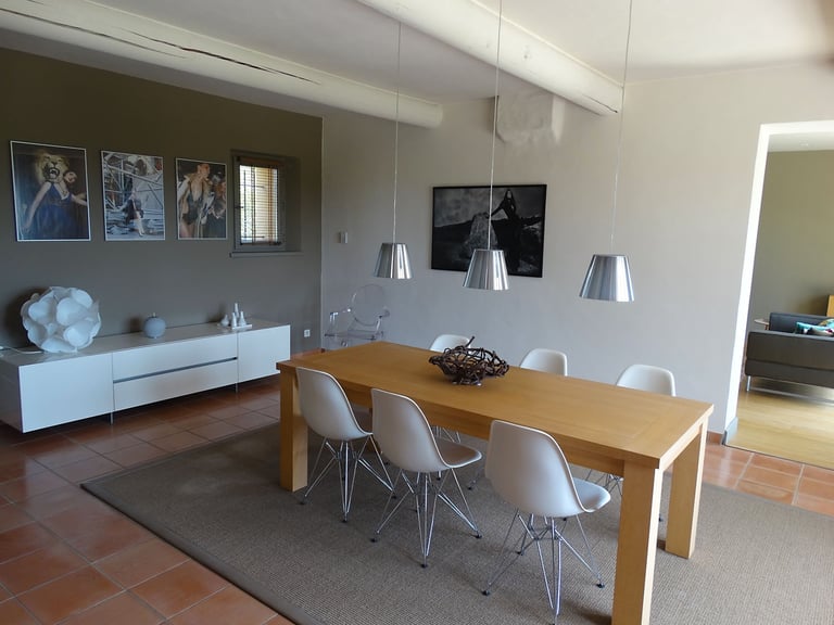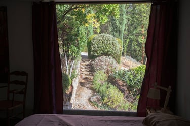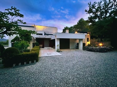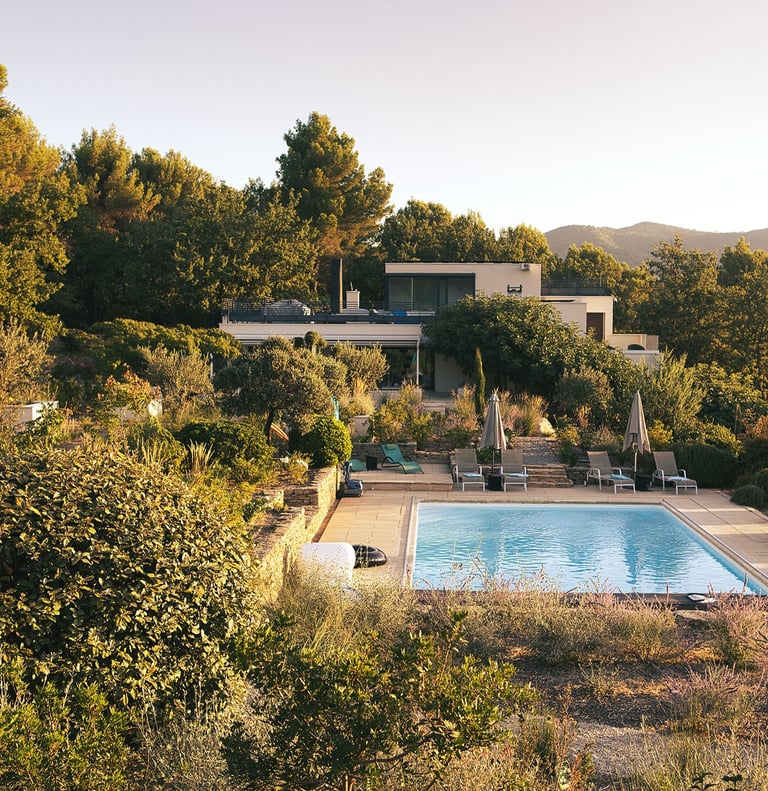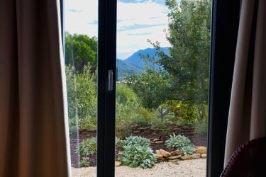 This artist’s villa is a source of inspiration, contemplation and intimacy. A true haven of peace, it is located in the very heart of a vast mountain range. You will be under the spell of this marvelous landscape which is offered to you: an exceptional view of Mont Ventoux and its entire valley. Not overlooked and without noise pollution.