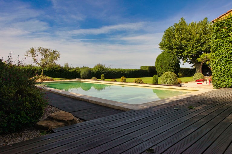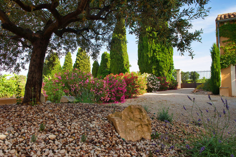 A large heated swimming pool is available to you for long, lazy days. Decorated with numerous terraces and deckchairs, you will find calm and pleasure there. A landscaped garden surrounds the house and the swimming pool. You can walk there to discover the Provençal and Mediterranean vegetation and its intoxicating scents.