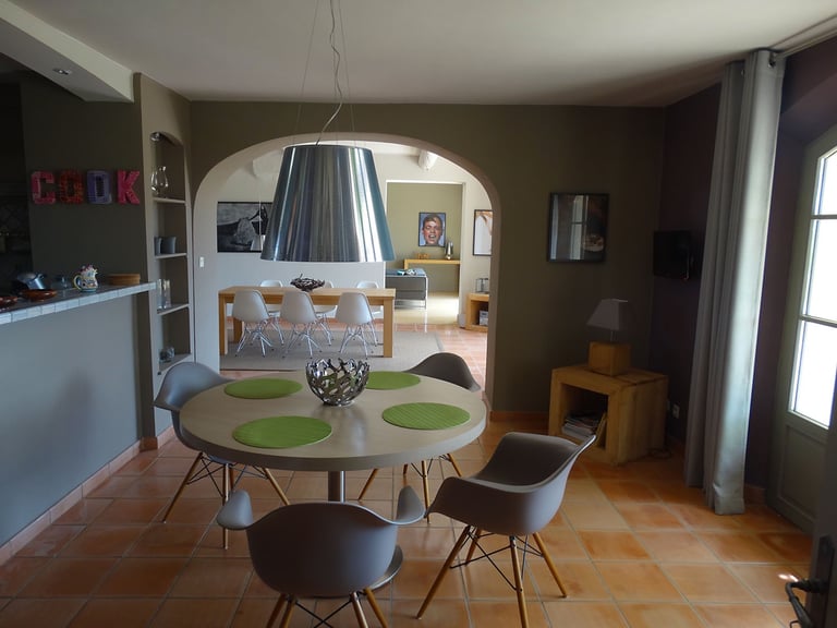 In the north of the Vaucluse department, located in the middle of the Côtes du Rhône vineyards near Sablet, this 19th century farmhouse is very comfortable. It will seduce you with its authenticity combined with a contemporary interior. It is quiet and not overlooked. For wine lovers, the region is a paradise. Between Gigondas, Vacqueyras and Châteauneuf-du-Pape, there are dozens of wine cellars to discover. Hikers or bikers will go for a stroll in the Dentelles de Montmirail, clearly visible from the house. Vaison-la-Romaine is 15 minutes away. Your days will be punctuated by the song of the cicadas.